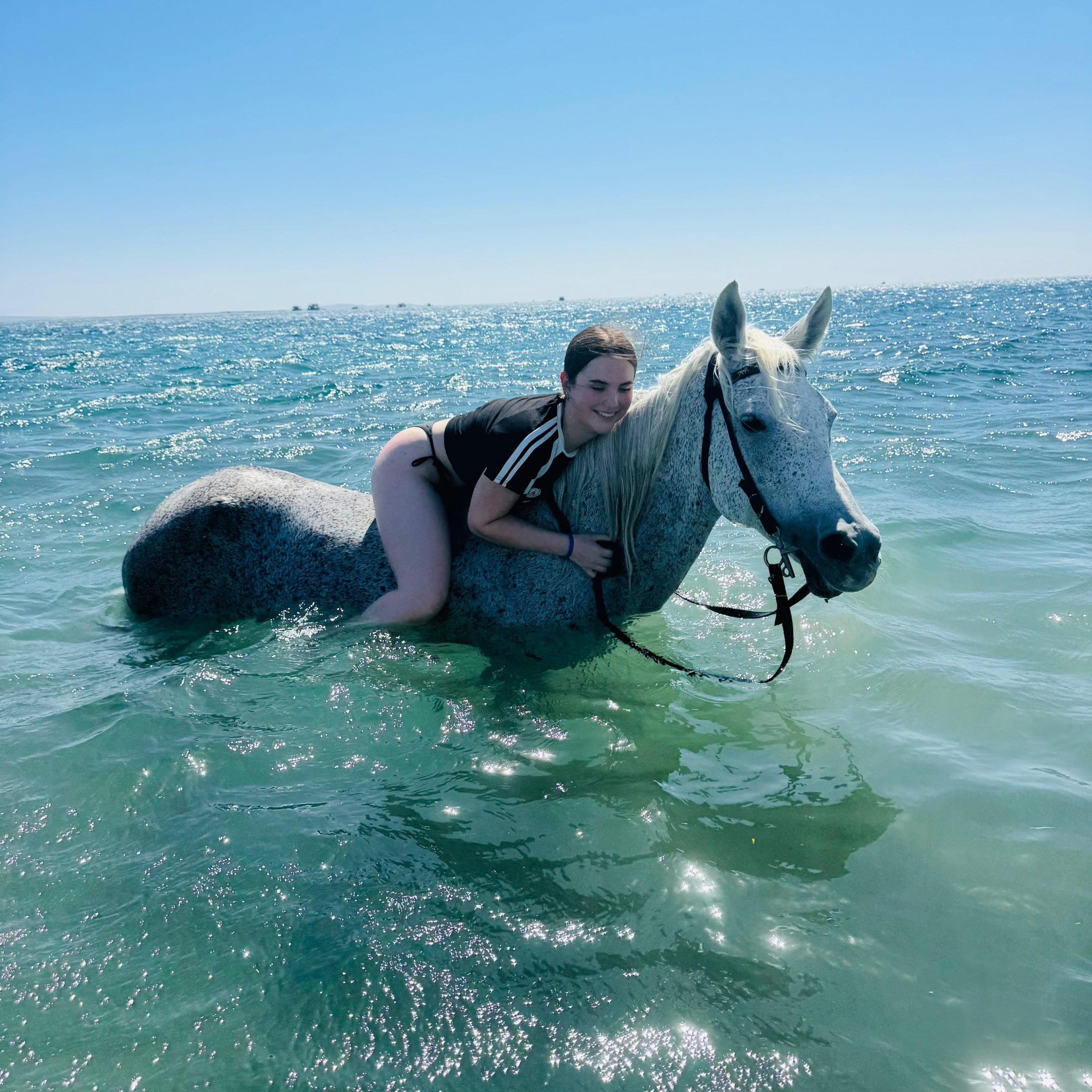 Voor wie een extra bijzondere belevenis zoekt, is er de optie om te zwemmen met de paarden. Tijdens deze privé-excursie rijdt u 1 uur langs het strand en gaat u daarna samen met het paard de zee in – een unieke ervaring die u niet snel zult vergeten!